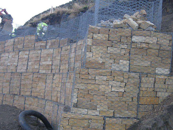 箱型石籠由大規(guī)格六角網(wǎng)聯(lián)結(jié)而成,施工中只需將石塊裝入籠中封口即可。
