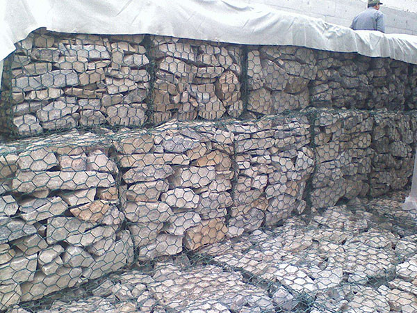 石籠網(wǎng)是使填石固定就位的鐵絲或聚合物絲網(wǎng)格式制作物。鐵絲籠是由鐵絲編織的網(wǎng)格或焊接而成的結(jié)構物。這兩種結(jié)構可以是電鍍的,編織的鐵絲箱可另外涂上PVC。用抗風化堅硬石塊作填料,它在石箱或石籠沉排中不會因磨蝕而很快破碎。裝有不同類型的塊石的石籠有不同的特性。多角的塊石能相互很好地聯(lián)鎖在一起,用其填裝的石籠不易變形。