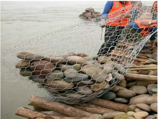 (3)合金網(wǎng)兜所構成的整體具有很大的柔韌性,而塊石間的間隙增多,即可緩解水流的沖擊,提高其抗沖擊能力而其柔性又可補償和適應地基的塌陷,阻止水流對堤基、堤趾的淘刷。