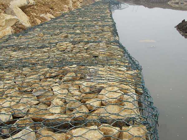 石籠網(wǎng)是使用機器將金屬線材單向搓捻兩周編織的六角形網(wǎng)(六角網(wǎng)) 制成的網(wǎng)箱,厚度在0.15-0.5m(含0.5m),又稱石籠和護墊,石籠網(wǎng)墊由隔板分成若干單元格,為了加強石籠網(wǎng)墊結構的強度,所有的面板邊端均采用直徑更大的鋼絲。
