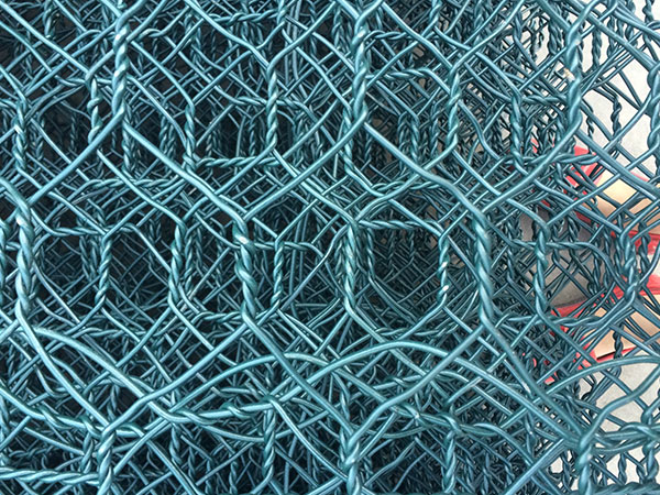 包塑石籠網(wǎng)是使用機器將金屬線材單向搓捻兩周編織的六角形網(wǎng)(六角網(wǎng)) 制成的網(wǎng)箱,厚度在0.15-0.5m(含0.5m),又稱石籠和護墊,石籠網(wǎng)墊由隔板分成若干單元格,為了加強石籠網(wǎng)墊結構的強度,所有的面板邊端均采用直徑更大的鋼絲。